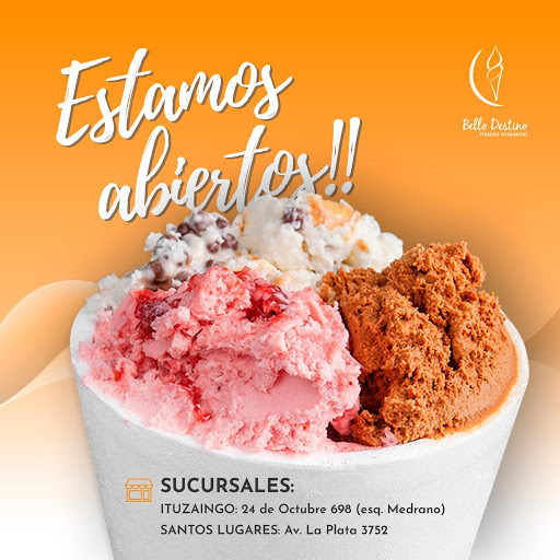 Heladería Bello Destino es una heladería ubicada en 24 de Octubre 698, GSF, AR, con un teléfono de contacto +54 11 4661-9950. La heladería cuenta con una puntuación de 4.3 estrellas basada en 509 reseñas.